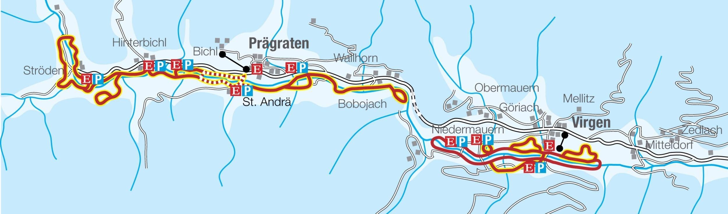 Rundløjpen på højsletten Kals am Großglockner til Großdorf zum Taurer betragtes som særdeles smuk af kendere. Udholdenhed kræver på den anden side løjpen til skøjtestilen i Prägraten am Großvenediger. Langrendssjov under stjernerne byder den 1,5 km lange oplyste langrendsløjpe ligeledes ved Prägraten.
